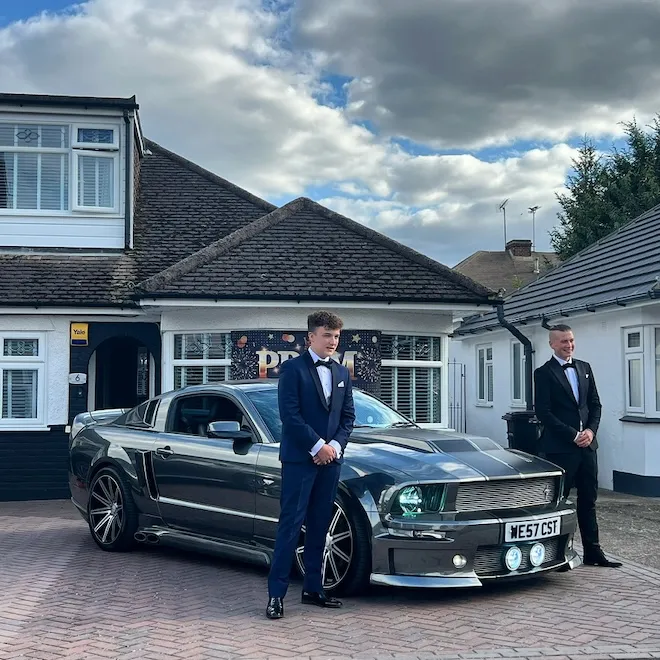 The Chrome Black Mustang GT is the ultimate statement car for cinematic shoots, weddings, prom and standout arrivals—combining raw American muscle with bold visual impact.